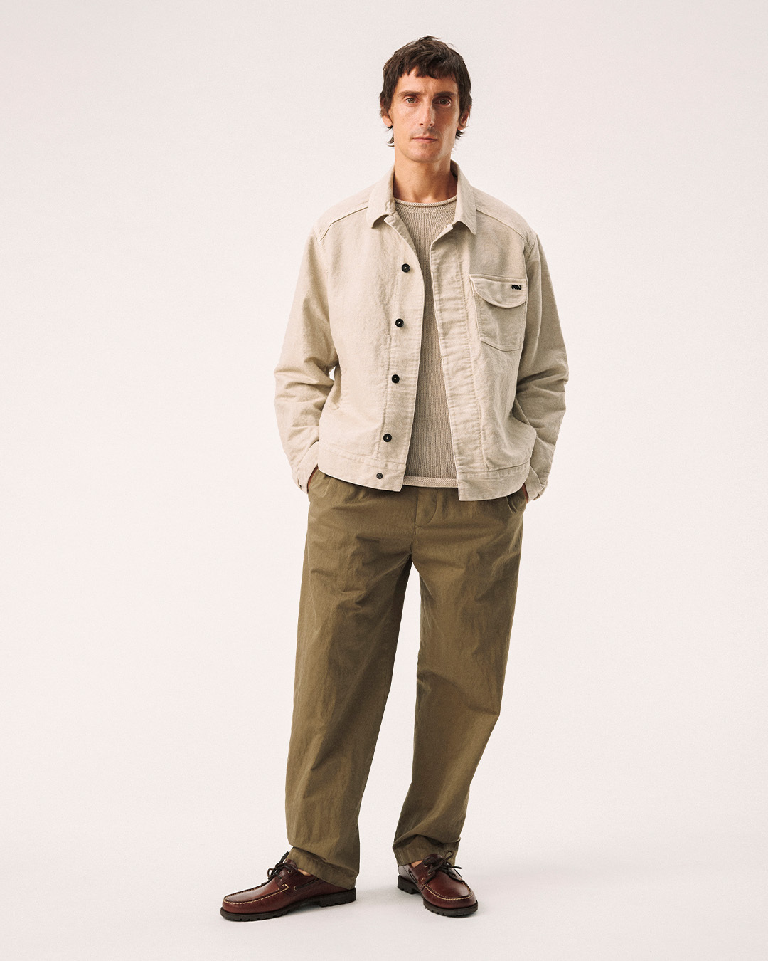 Rooted in centuries of Japanese craftsmanship, Washi paper forms the starting point of this Chapter. Made from plant fibres extracted from tree bark, it is combined with neri, a natural binding agent traditionally used in Washi production, and works slowly in water. This process allows the fibres to bond naturally, resulting in a surface defined by strength, flexibility, and lightness. These qualities are translated into garments characterised by a smooth texture and nuanced colour depth, achieved through garment dyeing.